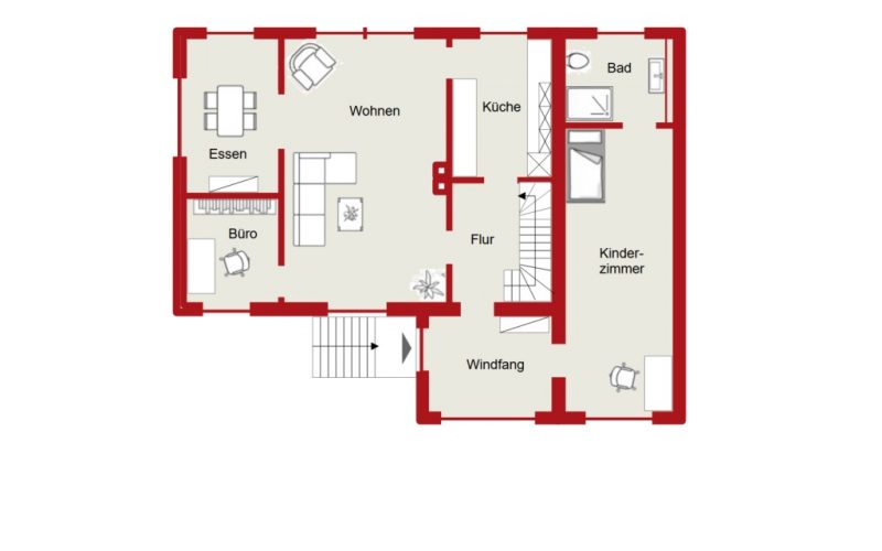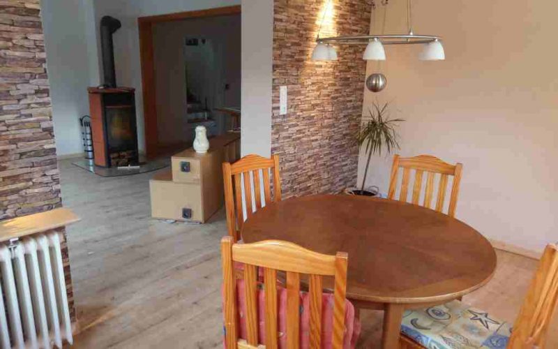 Das massiv erbaute Haus bietet auf zwei Etagen diverse Möglichkeiten, ihm einen eigenen Charakter zu verleihen und es nach individuellen Wünschen zu gestalten. Ein großzügiges Wohnzimmer mit fließenden Übergängen zum einladenden Esszimmer und zur Küche bilden das Herzstück des Erdgeschosses. Im Wohnzimmer wartet ein angeschlossener Kaminofen besonders an kühlen Abenden darauf, Ihnen das Gefühl von wohliger Geborgenheit zu vermitteln. Auf dieser Etage wurde außerdem ein modernes Bad mit großer bodentiefer Dusche geschaffen. Ein separater Raum für ungestörtes Home-Office und ein weiteres Zimmer runden das gute Platzangebot auf dieser Etage ab.