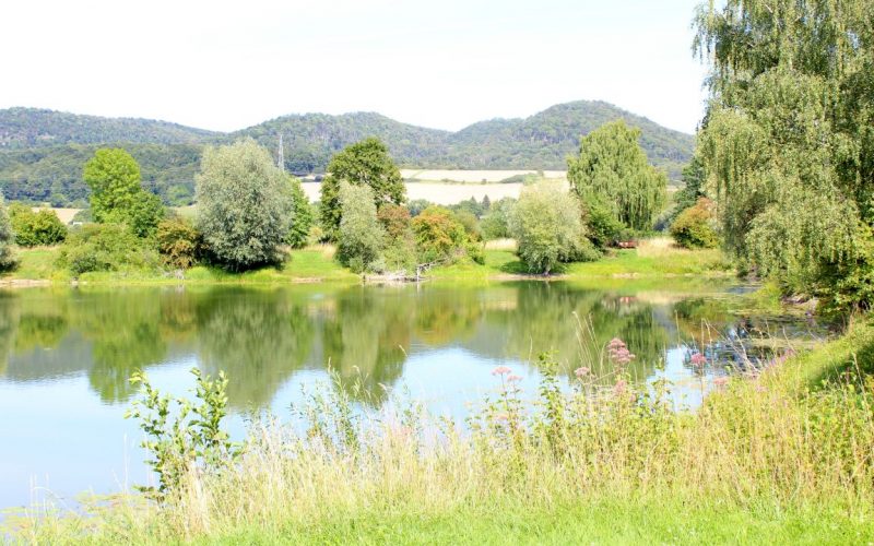 Von dem südlich ausgerichteten Balkon und vom Schlafzimmer haben Sie einen wunderschönen Ausblick in die Natur des Leineberglands und den an das Grundstück angrenzenden Angelteich.