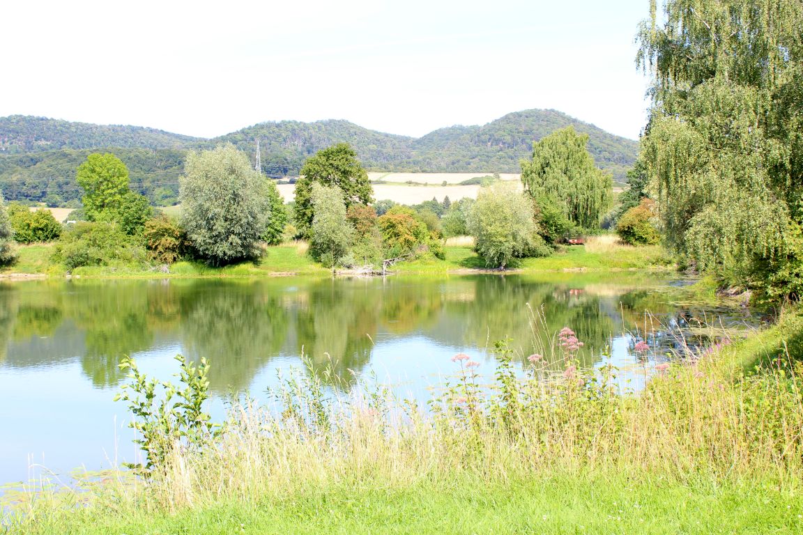 Von dem südlich ausgerichteten Balkon und vom Schlafzimmer haben Sie einen wunderschönen Ausblick in die Natur des Leineberglands und den an das Grundstück angrenzenden Angelteich.
