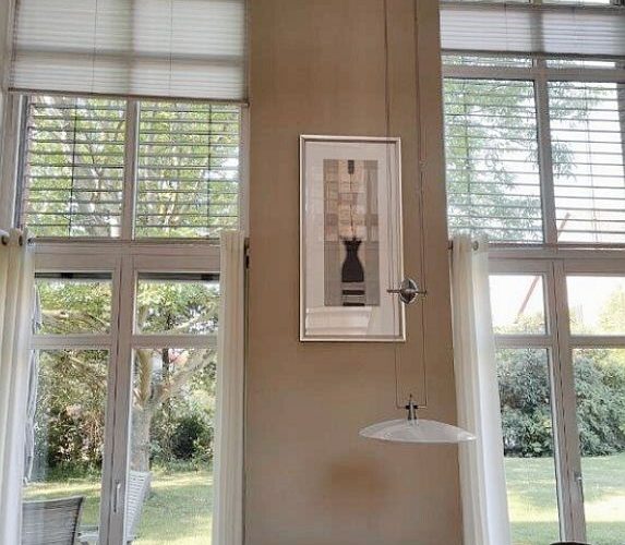 – Wohnhaus mit Fensterläden und Verschattung der großen Fensterfront