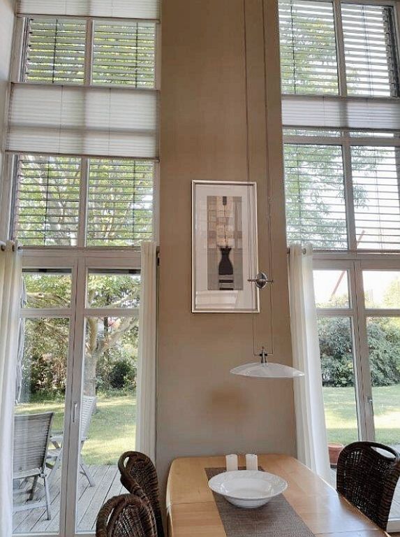 Das Architekturbüro hat mit einer beeindruckenden Fensterfront dem Wohnhaus extra viel Licht gegönnt. Das erleben Sie insbesondere im Erdgeschoss. Hier erwartet Sie ein luftig anmutender und sonnendurchfluteter Koch- und Essbereich. Die Einbauküche mit Ihrem Tresen ist clever gestaltet. Vom Essbereich aus erreichen Sie die weiteren Etagen und den Wohnbereich mit seiner beeindruckenden Deckenhöhe. Insgesamt wohnen Sie auf drei Etagen zuzüglich Keller. Auf jeder Etage befindet sich ein WC. Ebenfalls praktisch: Im Erdgeschoss gibt es einen Hauswirtschaftsraum dadurch ergeben sich relativ kurze Wege.