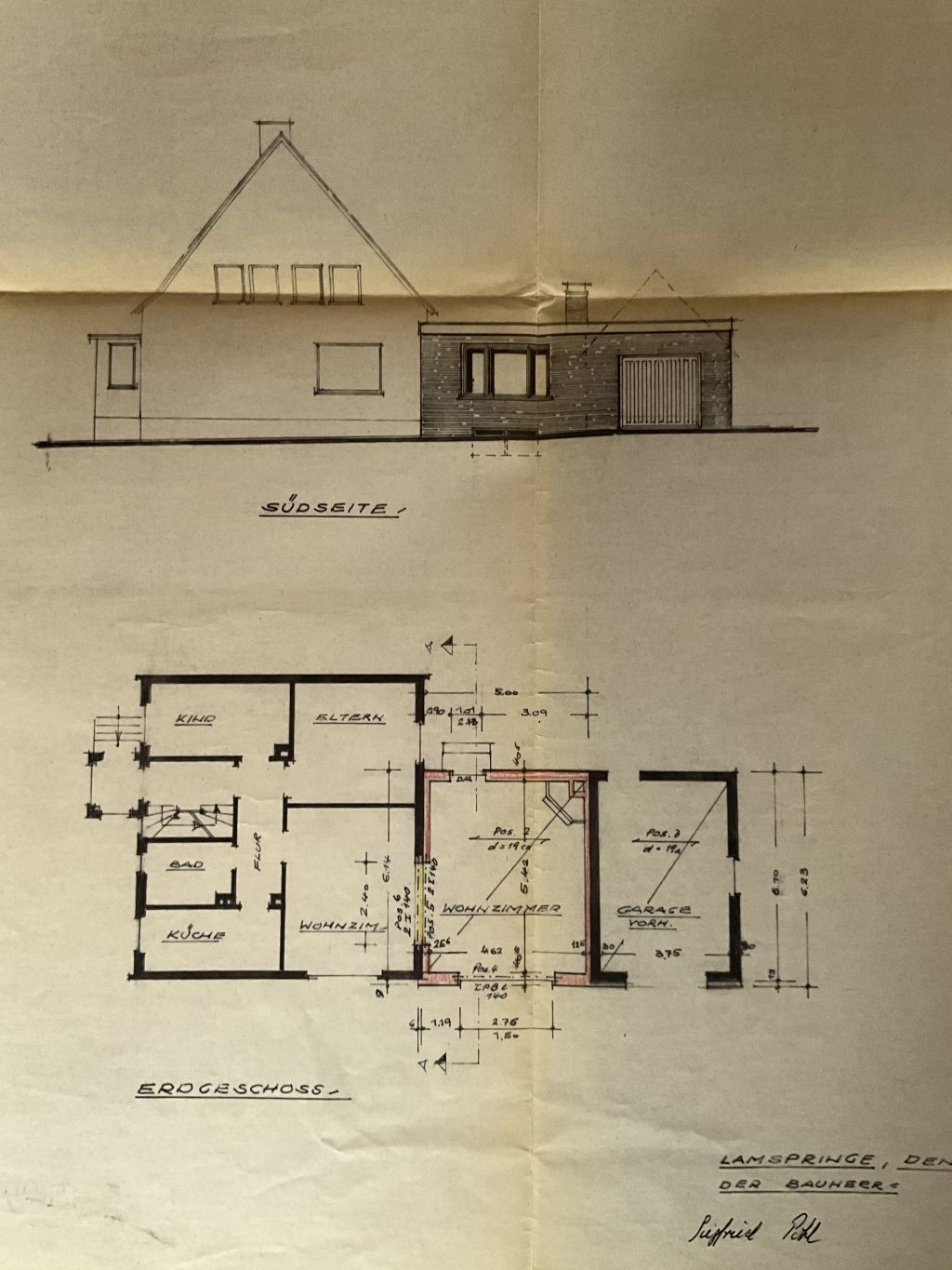 Das Haupthaus aus dem Jahr 1960 wurde 2005 erweitert, so dass heute eine Wohnfläche von ca. 134m² mit 6 Zimmern zur Verfügung steht. Der Zustand im DG ist gepflegt, hier wartet das Haus darauf das frisches Leben einkehrt. Das steht natürlich auf einem Eigentumsgrundstück in Größe von 924m².