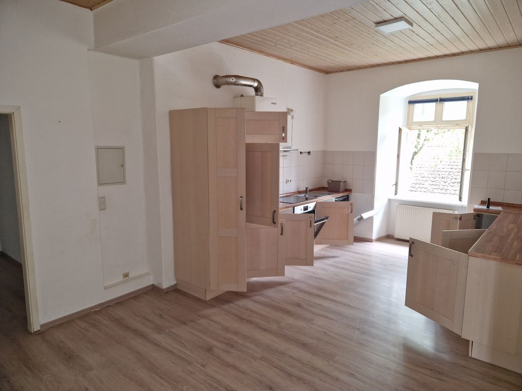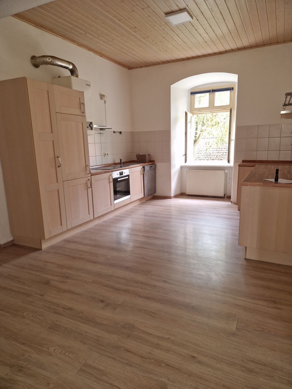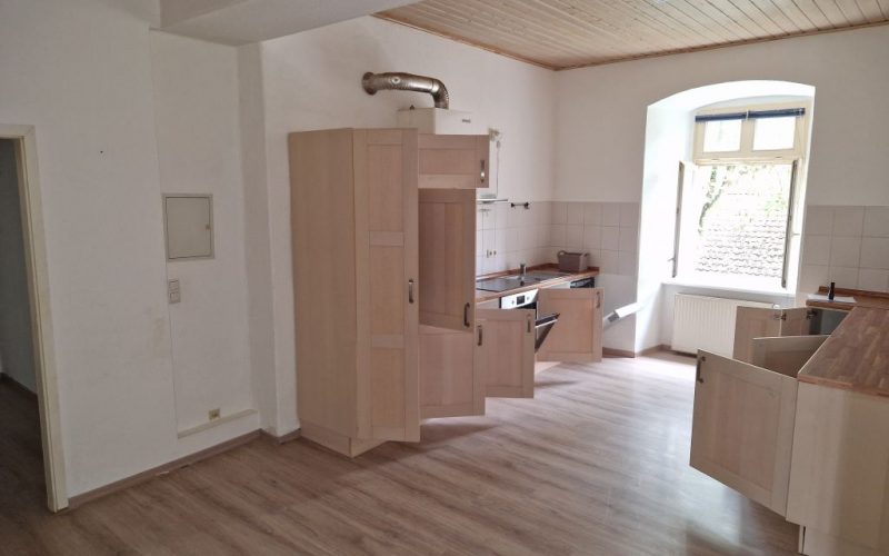 Durch den großen Flur erreicht man die offene Küche, welche zum täglichen Leben einlädt. Hier findet auch eine große Familie ordentlich Platz am Esstisch oder auch zum gemeinsamen Kochen. Die vorhandene Einbauküche könnte auch übernommen werden. Auf allen Böden befindet sich hochwertiges Laminat oder Fliesen. Ein ansprechendes Wohnzimer und ein gut geschnittenes Schlafzimmer runden dieses Angebot ab.